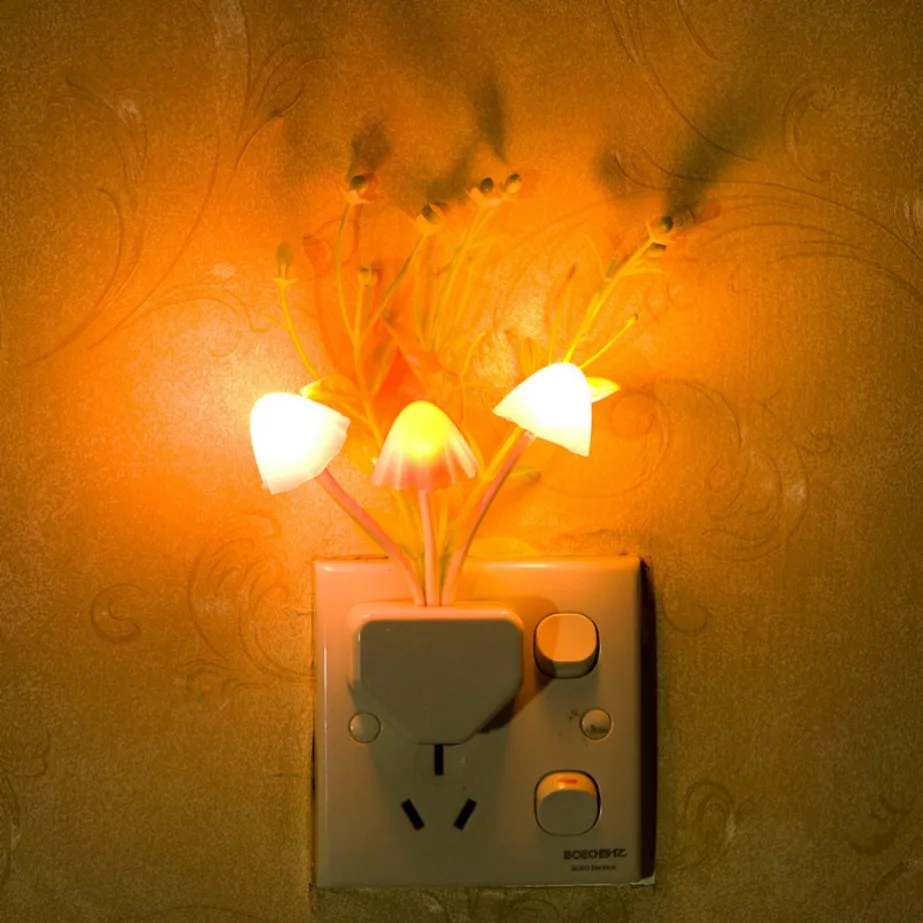 LED Night Light Automatic Sensor Night Lamp EU/US Plug in Wall Light 110V-220V 3 LED Mushroom Night Lights For Children Bedroom